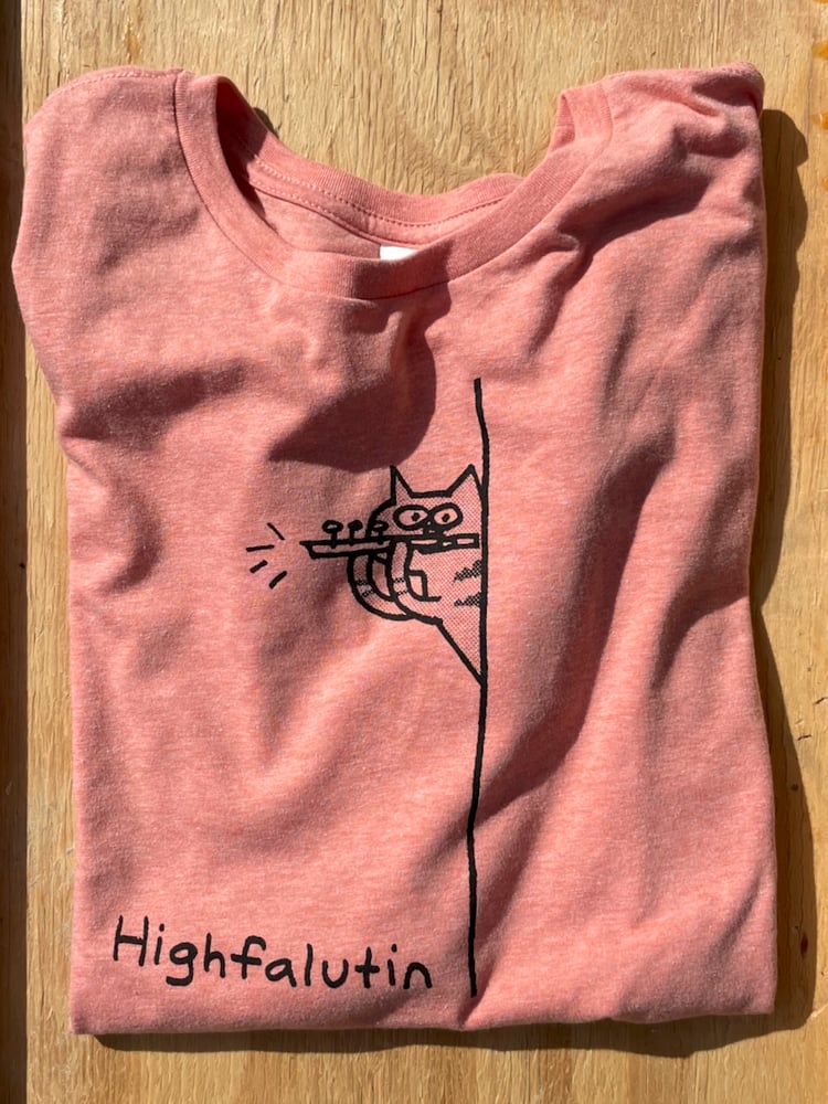Super-soft, unisex, short-sleeve tee with design hand printed on front (by Dave!)